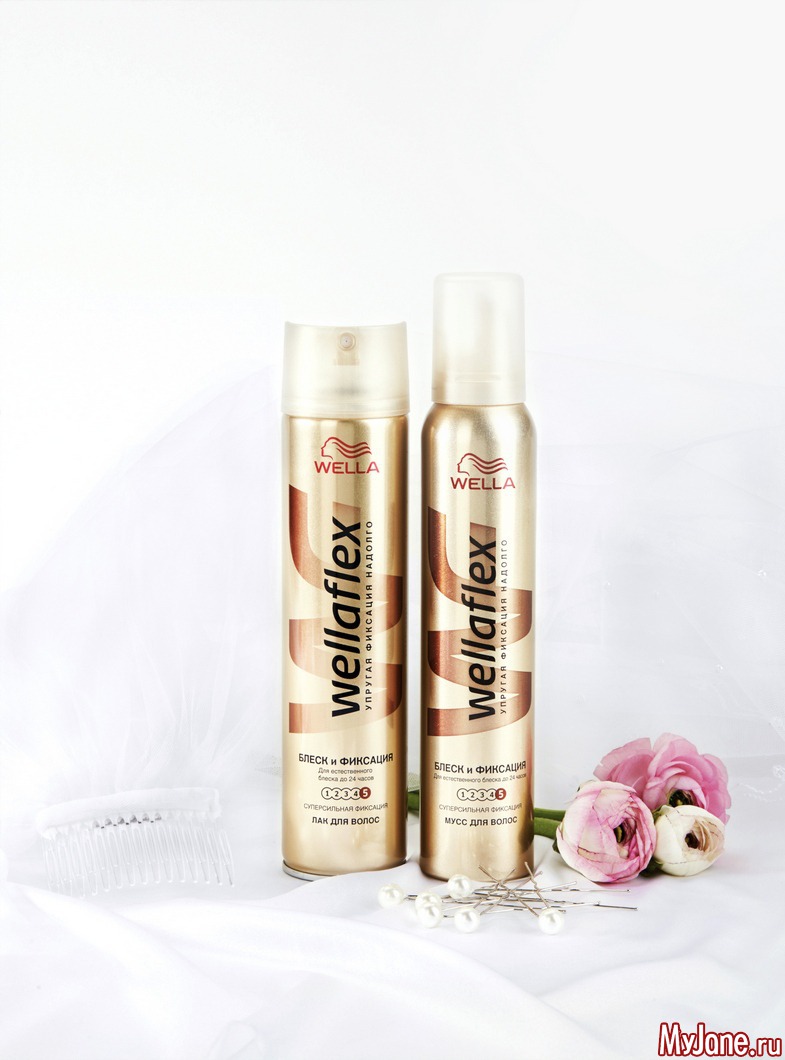 Мусс и лак Wellaflex «Блеск и Фиксация» с технологией Thermoflex помогут избежать повреждений волос при термическом воздействии в ходе укладки, а также обеспечат объем и упругую фиксацию прически. Ни один упрямый локон не выбьется из свадебной прически, а волосы будут выглядеть великолепно весь день.