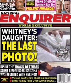 Теперь понятно, кто купил предсмертный снимок Бобби Кристины Браун и фотографию её в гробу. Это издание National Enquirer. Оно «украсило» свою обложку изображениями дочки Уитни Хьюстон. Одно относится к периоду пребывания Бобби Кристины Браун в хосписе, второе – к процедуре похорон.