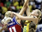 Самой результативная у россиянок - Мария Степанова, добавившая к 17 очкам 13 подборов. У австралиек лучшие - Лорен Джексон (на фото бьет Степанову по голове) и Пенелопа Тэйлор. Австралия в финале показала высокий процент попаданий из-за трехочковой черты: 9 из 22 дальних бросков достигли цели.