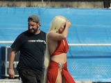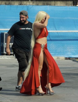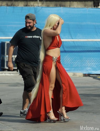 При ходьбе у Леди Гаги видно нижнее белье, и она даже не считает нужным придержать юбку.