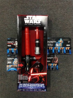 • Набора батареек Duracell (в него входит 4 разные упаковки Duracell из лимитированной серии, посвященных выходу фильма «Звёздные Войны: Пробуждение Силы», на которых можно увидеть 3D-голограмму персонажа, считав изображение с помощью мобильного приложения для дополненной реальности Blippar);