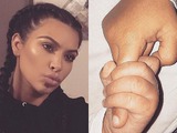 Ким на своей странице разместила фотографию ручек новорожденного сына Сейнта и 2-летней дочки Норт.