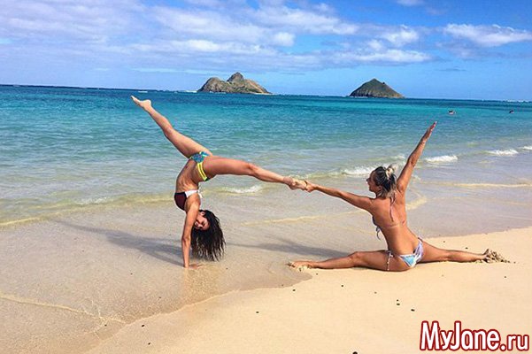 Добрев очень активно проводит каникулы. Она делает шпагат и стоит на руках. Словом, находится в великолепной спортивной форме.