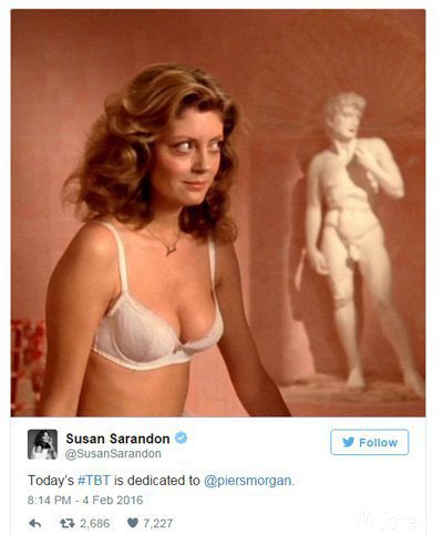 Многих интернет-пользовательниц потрясла критика обозревателя Daily Mail Пирса Моргана в адрес замечательной актрисы Сьюзан Сарандон, надевшей на церемонию наряд с глубоким декольте.
