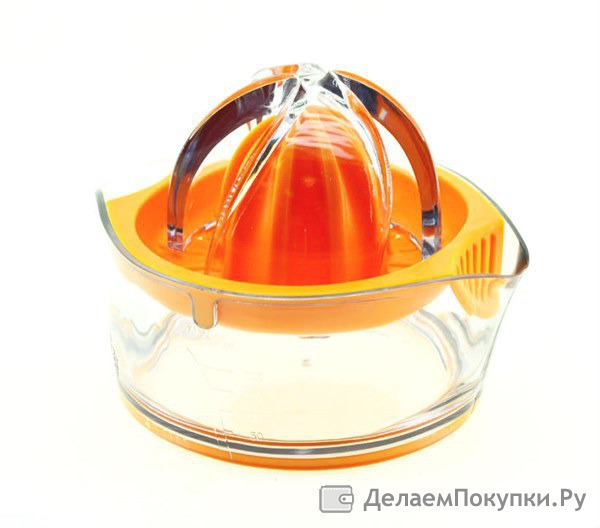 Компактная соковыжималка от FRYBEST предназначена для цитрусовых: лимона, лайма или апельсина. Разрежьте фрукт на две половины, уложите срезом на насадку в форме конуса и надавите рукой, вращая из стороны в сторону. Специальная насадка удержит мякоть и косточки, а вам останется свежий сок в прозрачном стакане.