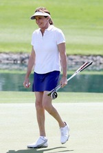 Для партии в гольф Кейтлин Дженнер выбрала синюю мини-юбку. В таком виде она появилась в загородном клубе Mission Hills Country Club.