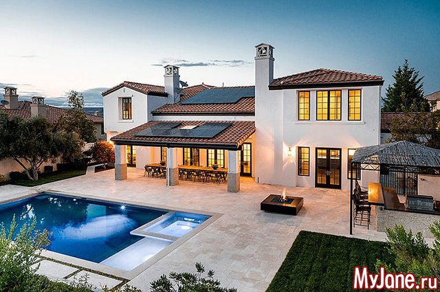 Известно, в доме 5 спален и 7 ванных. Имеется огромная гардеробная, большая кухня и столовая, особая SPA-зона для расслабления. У дома – бассейн. В особняке есть гараж на три авто.