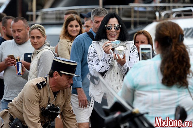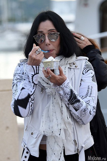 Шер видели в Сен-Тропе, где она гуляла, а потом купила себе мороженого и наслаждалась им, идя по улице.