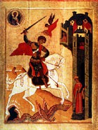 Георгий Победоносец считается покровителем Русского Воинства. Недаром в русской армии Георгиевские кресты были одной из самых почетных наград. Георгиевская лента и сейчас является одним из символов торжеств в честь 60-летия Великой Победы над фашизмом.