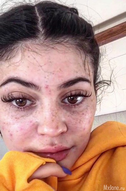 Впечатление произвели и крупные веснушки, и прыщи на лице. Отличие от того, в каком образе Кайли обычно предстает перед публикой, конечно, разительное.
