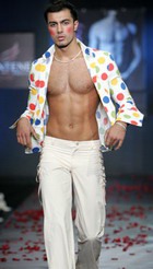 Из-за макияжа моделей (свекольный румянец на щеках мужчин) казалось, что новая коллекция “Like a virgin” Body Boy (Ева Польна и Наталья Солдатова) создана для скромников. Но наличие большого количества вариаций на тему «черный верх, белый низ» (да-да, теперь все меняется) еще не говорит о том, что эта коллекция для застенчивых скромняг.