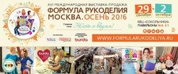 С 29 сентября по 02 октября в Москве, в КВЦ «Сокольники» состоится XVI Международная выставка-продажа «Формула Рукоделия Москва. Осень 2016». Все лето компании, магазины и частные мастера готовились порадовать вас и представить самые свежие новинки творческих проектов на осенней выставке-продаже «Формула Рукоделия».