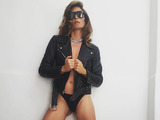 Модель появилась в секси образе – кожаной косухе на голое тело, трусах и ботфортах.
