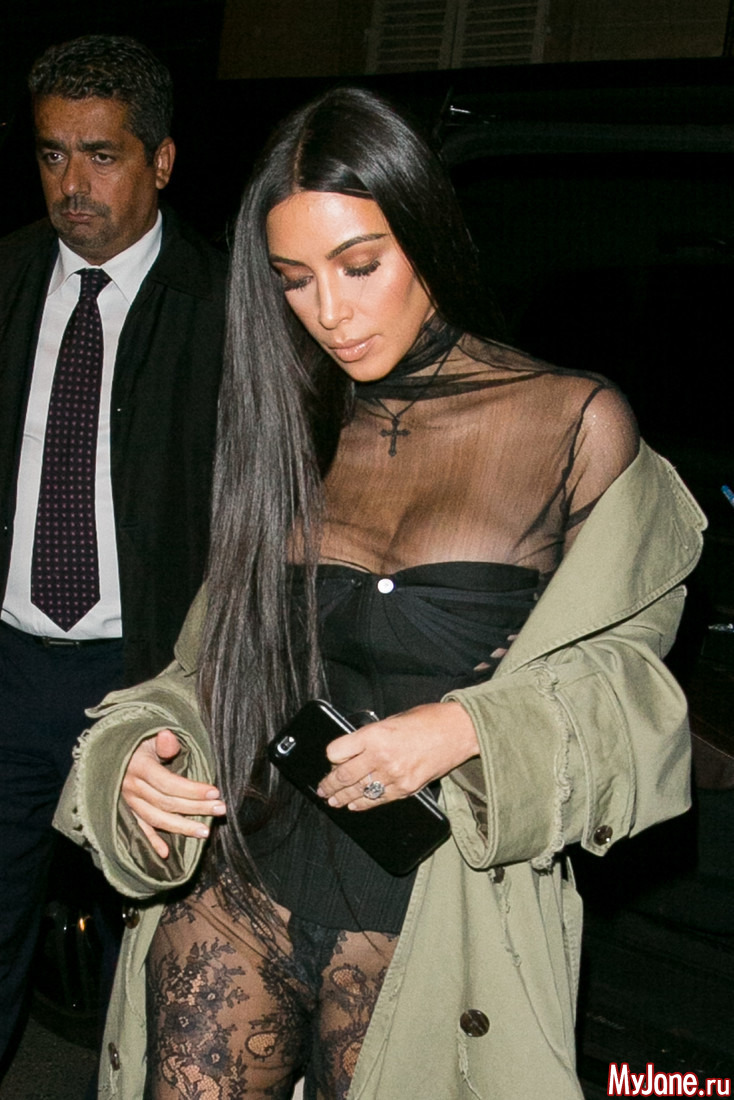 Напомним, что Ким прибыла в Париж на Неделю моды. Но сумела отхватить внимание папарацци при помощи более чем оригинального лука. Нижнее белье под кружевные брюки не полагалось.