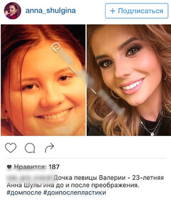 Дочка Валерии Анна Шульгина крайне возмущена лживыми новостями в прессе о том, что она прибегла к пластике лица. Свои комментарии по этому поводу знаменитость опубликовала в Инстаграм.