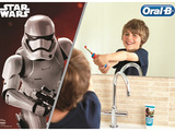 *Щетка Oral-B Stages Power «Звездные войны» абсолютно безопасна для твердых и мягких тканей полости рта, при этом удаляет больше бактериального зубного налета, чем мануальная зубная щетка. Укороченные мягкие щетинки идеально подходят для детей и не травмируют десны. Круглая форма чистящей головки позволяет удалять налет со всех сторон каждого зуба, предотвращая появление зубного камня и кариеса. Аккумулятор держит заряд до 5 дней (при использовании по 2 минуты утром и вечером). В комплект входит насадка с изображением персонажей «Звездных войн», для лучшего результата ее следует менять каждые 3 месяца.