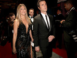 Журналисты так и не дождались Энистон, а потом с удивлением обнаружили ее в зале вместе с супругом Джастином Теру.