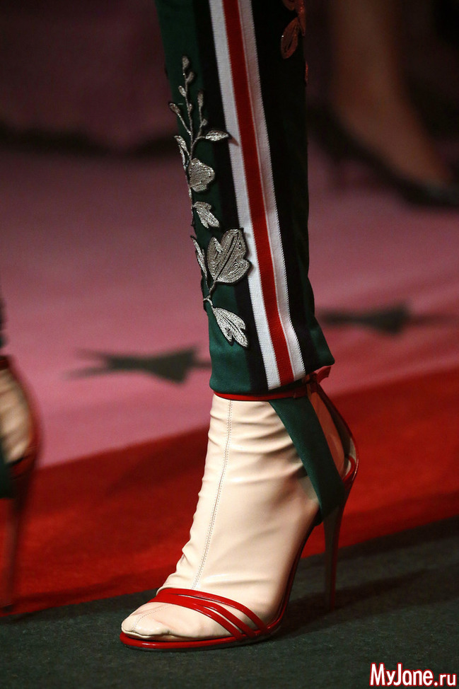 Как известно, тренд этот очень спорный – носить носки под открытую обувь. Однако многие дизайнеры его упрямо продвигают. Творение Gucci – лишь логичное продолжение тренда.