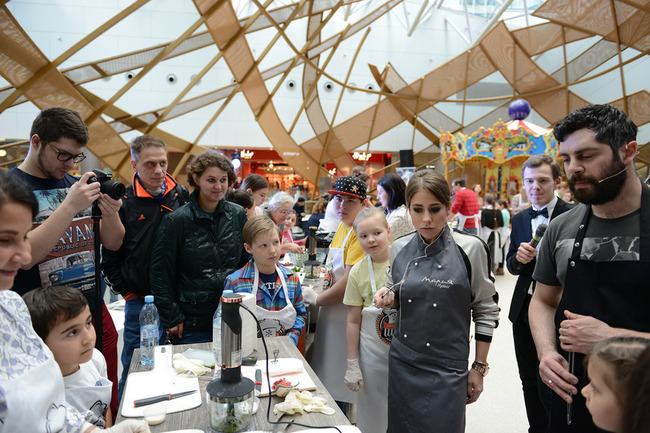 Юля Барановская со знанием дела подошла к готовке блюда "Шато-бриан с пюре из печёных баклажанов". Помимо того, что Юля известная телеведущая, она еще и мать троих детей. А накормить целую ораву быстро и вкусно - задача не из легких. Но Барановская с ней справилась. Даже дала несколько полезных советов шеф-повару ресторана Funny Cabany Марку Стаценко, как сэкономить время на чистке баклажанов. По признанию самой Юли, кулинарное искусство ее давно привлекало. Еще будучи супругой футболиста Андрея Аршавина и проживая в Лондоне, Юля сетовала на местную кухню и скучала по русским продуктам. Поэтому в еде она настоящий гурман. В этом смогли убедиться и посетители Кунцево Плаза. Блюдо от Юли Барановской пошло буквально по рукам, оставив на тарелке одни рожки да ножки.