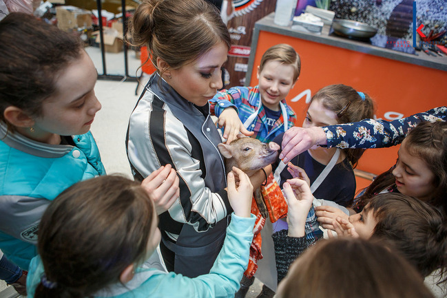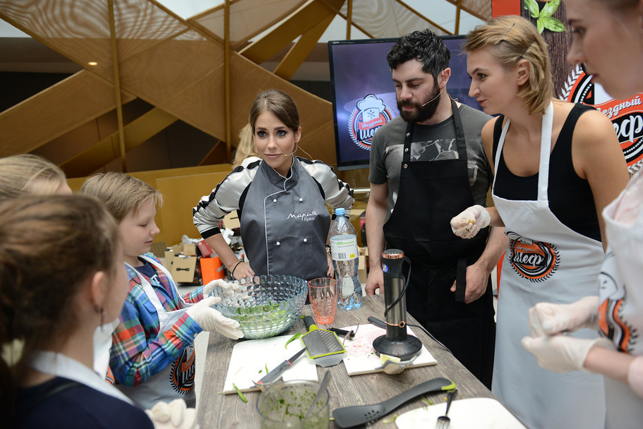 В Кунцево Плаза состоялся второй кулинарный мастер-класс из цикла "Звездный шеф". На этот раз за плиту встала известная телеведущая Юля Барановская. На встречу с гурманами и фанатами Юля появилась не одна, а в компании маленького поросёнка. Особо остроумные посетители пошутили, мол, телеведущая пришла со своими продуктами, но Юля отшутилась, дав понять, что этот маленький поросенок по кличке Фани - символ или так называемый "хозяин" ресторана Funny Cabany, шеф-повар которого помогал ей готовить блюдо на мастер-классе.