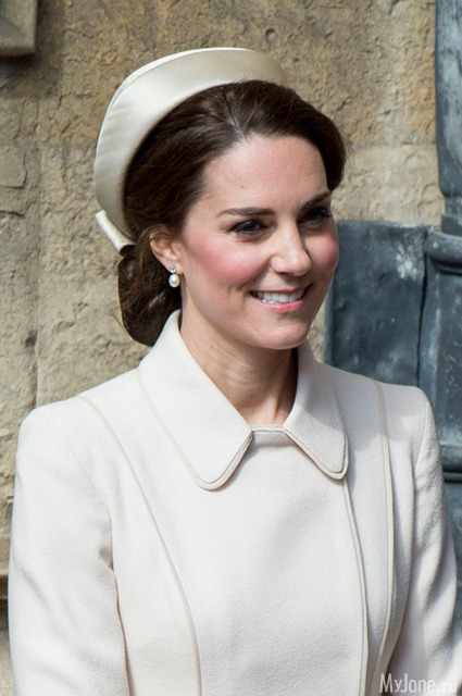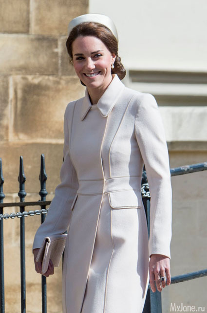 Вчера королевская семья пришла на праздничное богослужение в часовню Святого Георгия. Как всегда, внимание прессы привлекла элегантная Кейт Миддлтон, выбравшая для такого особенного дня особенный наряд.