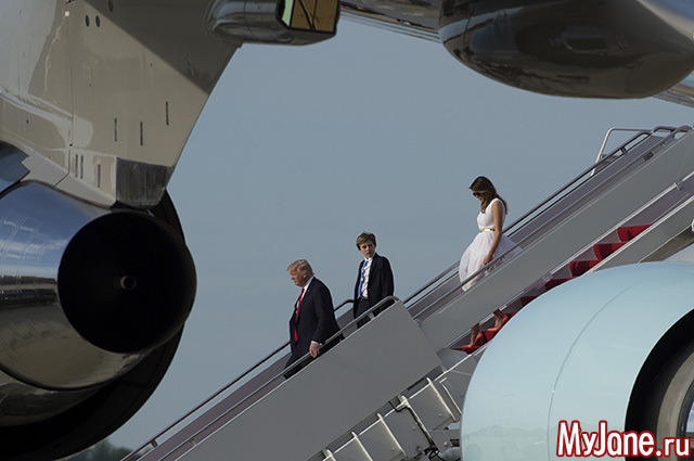 СМИ опубликовали фотографию, на которой семья Трампов спускается с самолета. Дональд Трамп спустился первым и начал приветствовать встречающих, не дожидаясь своей жены. Также Дональда осудили за то, что она совершенно не заботится о безопасности Мелании. Если бы он шел на одну ступеньку раньше ее, то смог бы подхватить в случае падения. До Трамп об этом не заботится. Он вырвался далеко вперед.