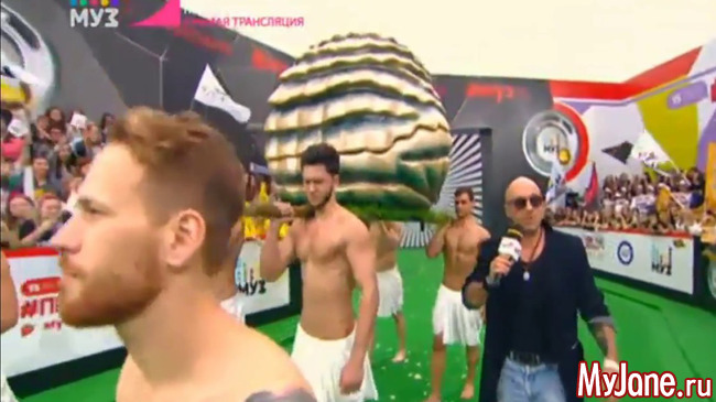Точнее, не пришла, а приехала. Ольгу, спрятанную в большую ракушку, вынесли на красную дорожку мускулистые красавцы. А вскоре оттуда выпрыгнула и сама Ольга.