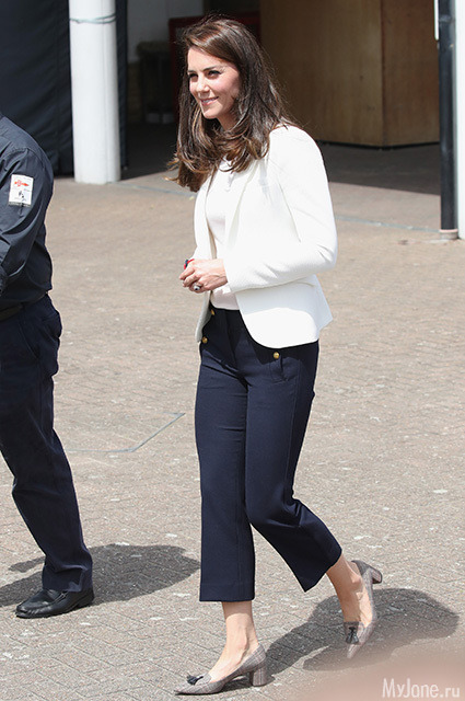 На роуд-шоу в Лондоне Кейт приехала в дешевом пиджаке Zara, стоимость которого составляет всего три с половиной тысячи рублей. Туфли не намного дороже – не более двадцати тысяч рублей. Да и не новые они – сколько раз Кэтрин уже в них появлялась.