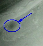 Есть гигантский шторм "Большое красное пятно" на Юпитере - он гораздо больше того, что бушует на Сатурне и движется против часовой стрелки, однако у него нет "глаза" и окружающих его вихрей, которые являются признаками урагана.