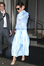 Розовый и голубой наряды Виктории Бекхэм в Нью-Йорке