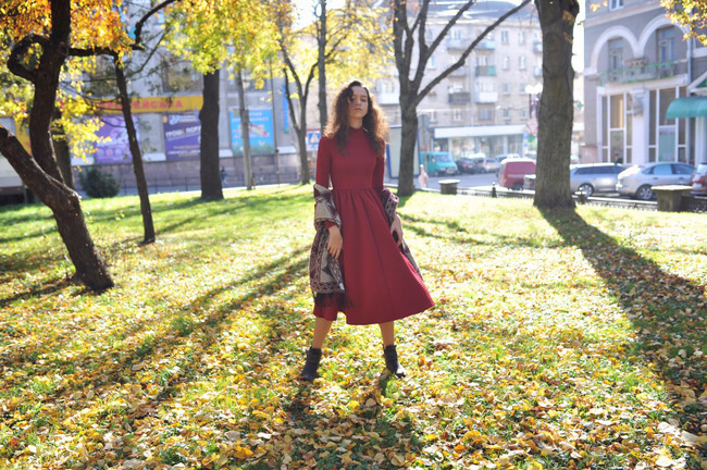 Глубокий и роскошный бордовый цвет подчёркнёт любой цветотип, будь вы блондинка, шатенка или брюнетка. Этот оттенок красного не такой уж и требовательный к сопутствующим аксессуарам и верхней одежде, как может показаться на первый взгляд. Комбинации могут быть как с белым, чёрным, серым, коричневым, бежевым цветами. И даже с жёлтым, оранжевым, красным, розовым, оливковым, зелёным, синим и другими оттенками. Самое интересное, что от этого ваша оригинальность не пострадает, а наоборот позволит экспериментировать и удивлять. Так же, как ни странно, такое платье можно надеть абсолютно в любое место: на романтическое свидание в театр, на важную встречу или посиделки с друзьями.