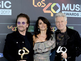 На фотографиях актриса позирует с музыкантами Боно и Адамом Клейтоном.