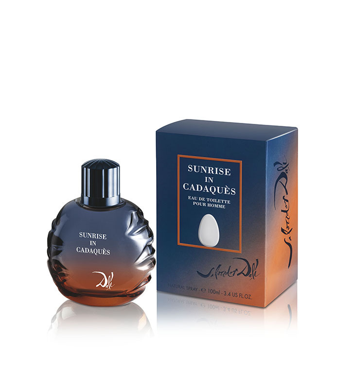 Дизайн флакона SUNRISE IN CADAQUES ассоциируется с солнцем, медленно поднимающимся над поверхностью моря. Яйцевидный флакон, кроме того, напоминает о каменных яйцах, созданных Дали для украшения крыш его удивительного дома в Кадакесе.