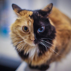 Но от этой кошки вы точно не сможете отвести глаз. Разные глаза – это не такая и редкость, а вот окрас… Эту кошку назвали Химерой, и имя ей очень подходит.
