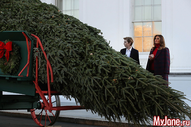 В Белый дом привезли новогоднюю елку. Под музыку военного оркестра роскошную лесную красавицу встречали Мелания Трамп и ее сын Бэррон.