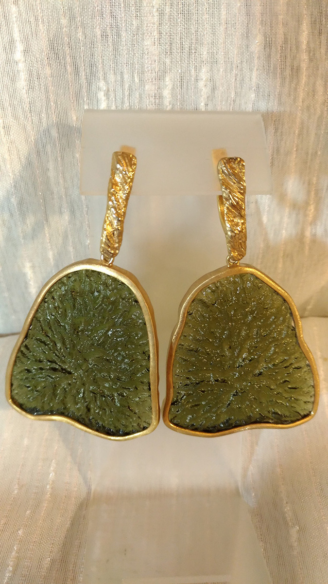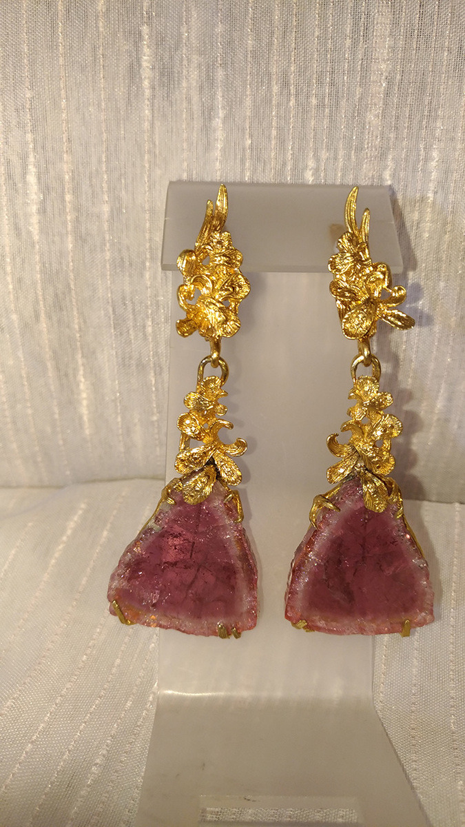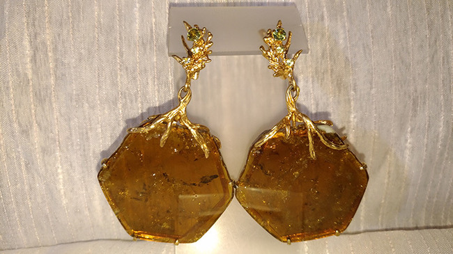 В ясной и выразительной форме серег и подвеса “Медовая рапсодия”, автору удается добиться особой четкости композиционного построения, в результате которого, изысканный по красоте золотистый турмалин выделяется на первый план и смотрится невероятно декоративно.
