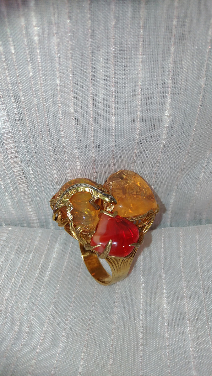 Особенно хочется отметить кольцо “В золотых лучах осени”- центром композиции которого представлен коллекционный цитрин, сияющий изнутри, как солнце, всеми своими золотыми лучами.