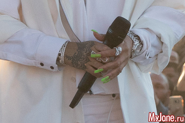 А вот ногти звезда решила почему-то покрасить в зеленый.