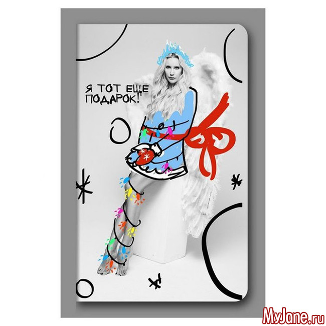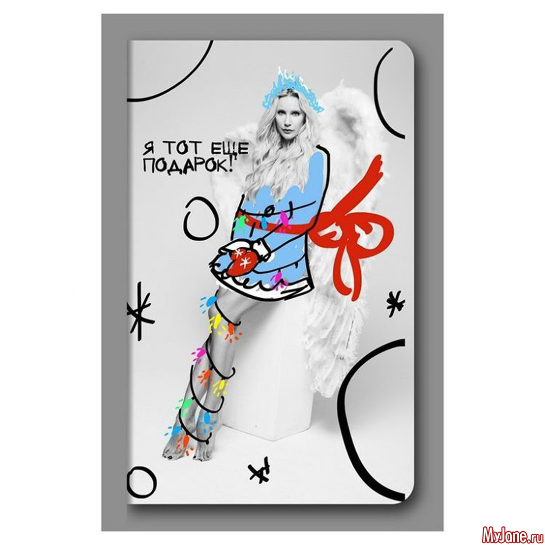 На фотографиях Летучая обнажена, но поверх графикой нарисована кое-какая одежда. С этими снимками ведущая выпустила не только календарь, но и блокноты.