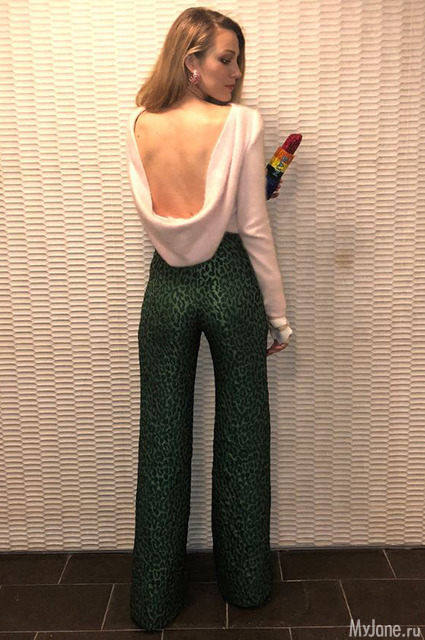 Блейк Лайвли решила отлично повеселиться и отправилась на вечеринку к художнице Эшли Лонгшор. Звезда разместила на своей страничке фото в клешных брюках.