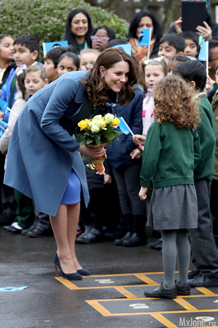 Дети вручили герцогиня букет. Напомним, что Кейт курирует одну из образовательных программ в этом учебном заведении.