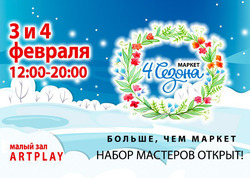 3 и 4 февраля в малом зале центра дизайна и архитектуры Artplay (ул. Нижняя Сыромятническая, 10) состоится маркет «4 сезона».