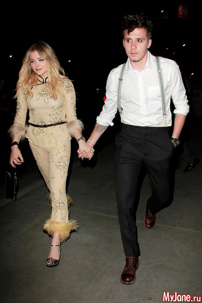 Журналисты сфотографировали Бруклина и Хлое Моретц, когда те шли на вечеринку в честь 21-летия успешно актрисы.