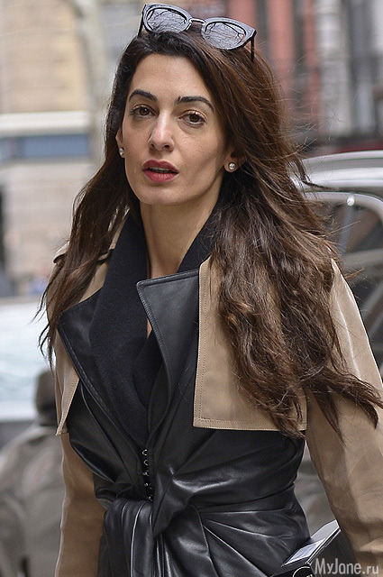 Кожаные куртки и плащи – писк сезона. Этот писк не остался без внимания Амаль Клуни, которая появилась на улицах Нью-Йорка в стильной кожаной вещице.