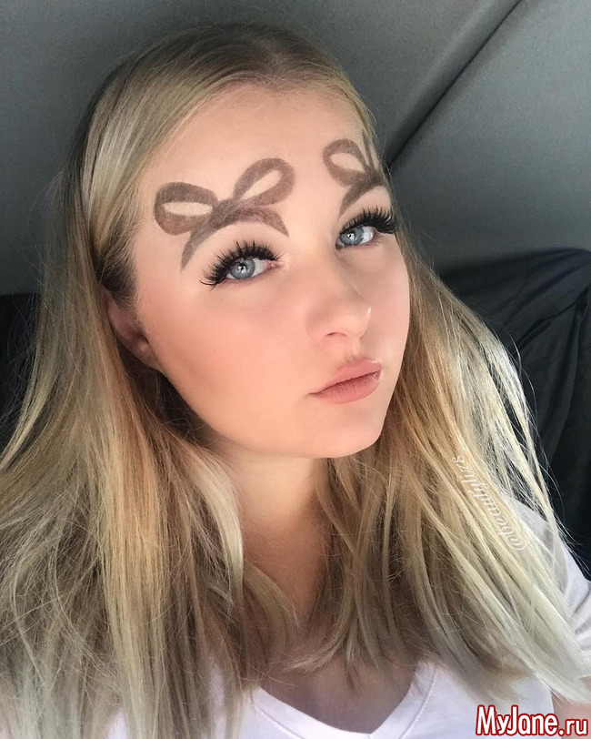 Девушка считает, что обратить на себя всеобщее внимание можно при помощи дорисовывания к бровям... бантиков. Далеко не все интернет-пользователи оценили задумку. Многие назвали ее просто нелепой.