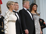 Обе первых леди были одеты очень достойны. Брижит отказалсь от мини в пользу платья в пол, чем сразу заслужила восторженные комментарии. Первую леди Франции часто критикуют за открытые коленки. В данном же случае придраться решительно не к чему. Ну, а Мелания – это, бесспорно, самая эффектная первая леди в истории США. И серебристое мерцающее платье ей очень к лицу.