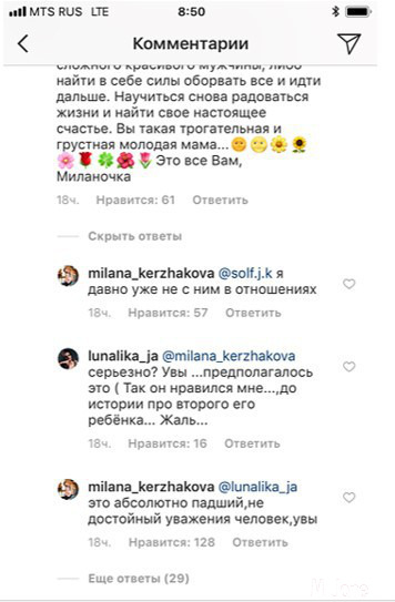 Не будет третьей годовщины свадьбы и красивых совместных фото в сетях. О том, что это не совсем благополучный брак заговорили уже спустя пол года со свадьбы. Александра замечали в обществе молодой красивой брюнетки, но его жена оправдывала эти встречи работой над новым документальным фильмом , с участием Кержакова. Но вот на днях Милана в комментариях прямо написала, что уже не в отношениях с Александром и считает его недостойным мужчиной.