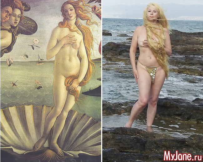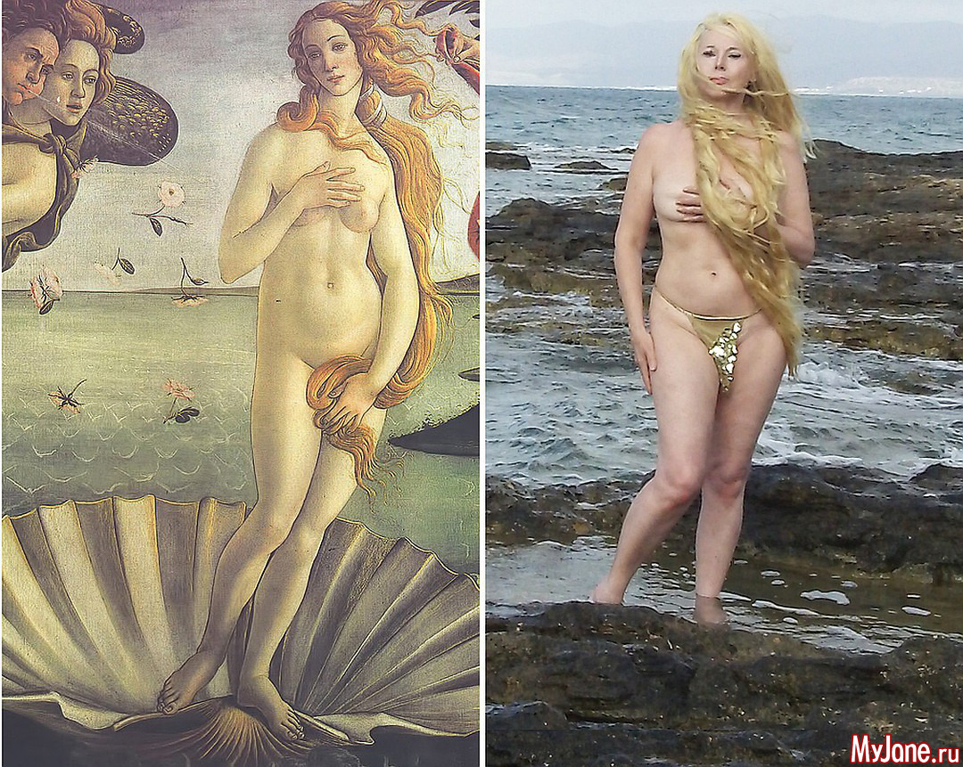 Актриса советского и российского кино Елена Кондулайнен вдохновилась полотнами Ботичелли. На отдыхе в Греции она решила сделать эротическую фотосессию, по мотивам Рождения Венеры Ботичелли.
