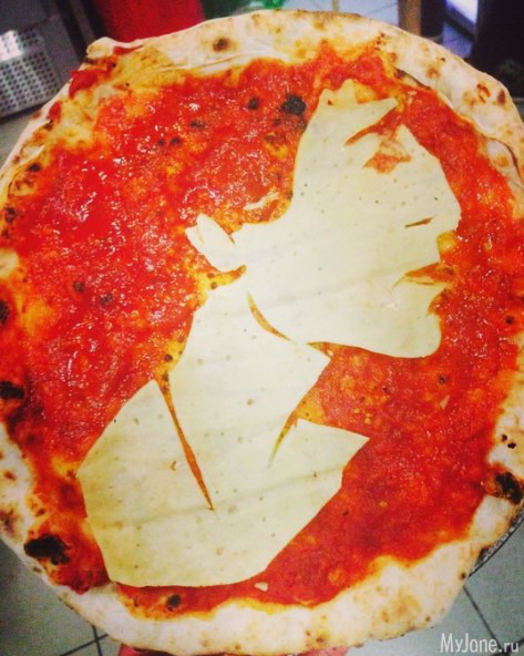 Мы не будем раскрывать все имена и фамилии, знаменитостей, а лучше покажем. Стоит только заметить, что после разгромных побед российской команды на начальных этапах, Валерий изобразил на пицце Станислава Черчесова - тренера команды. А перед матчем Россия - Уругвай пицайло создал портрет Артема Дзюбы.