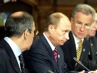 На фото: Сергей Лавров, Владимир Путин и Сергей Ястржембский на саммите Россия-ЕС.